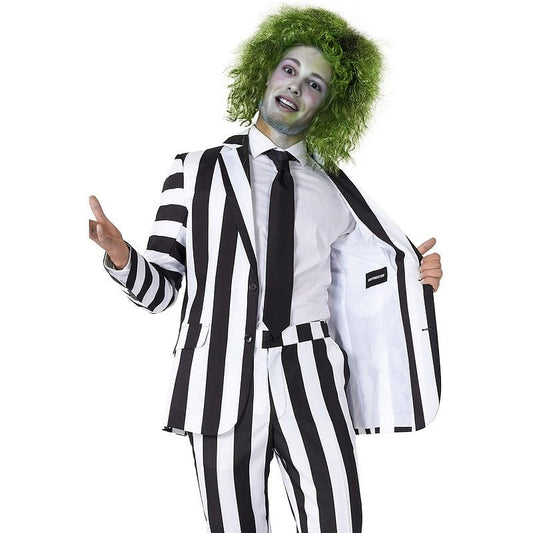 Men's Betelgeuse Costume Black and White Striped Suit Jacket Pants Shirts Outfit for Halloween Cosplay