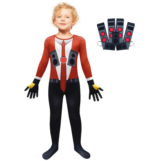 Kids Titan Speaker Man Costume Boys Skibidi Toilet Speakerman Jumpsuit and Mask 2pcs Suit