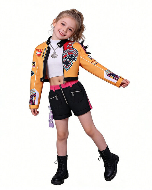 KPop Demon Hunters Rumi Costume Yellow Jacket Shorts Deluxe Full Set
